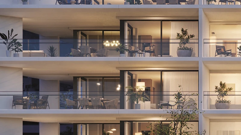 L'immeuble propose 14 appartements, incluant 2 attiques duplex de 6,5 pièces, et un commerce bureau duplex au rez-de-chaussée et au 1er étage. Équipé d'un ascenseur, il offre des places de stationnement pour voitures, motos et vélos, des caves, et une zone verte arborisée au rez-de-chaussée.