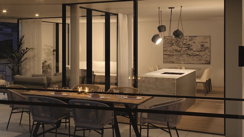 Les grandes terrasses couvertes offrent un confort supplémentaire permettant de profiter de l'extérieur toute l'année, avec en plus un triple vitrage assurant confort thermique et acoustique. La ventilation double flux assure un air sain en permanence, limitant les substances nocives et l'humidité.
